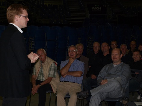 I går var mere end 65 frivillige samlet i Herning Messecenter til markering af, at der nu er mindre end et år til verdensmesterskaberne i brydning begynder i Herning. Fra den 21. september og frem til den 27. september næste år vil Herning og Danmark komme til at danne ramme om det største internationale mesterskab set på deltagerlande, der endnu er afholdt i Danmark. 1-års markeringen fandt sted i Hal B i Messecenteret, da det netop er i Hal B at mesterskabet skal afvikles. Hallen fremgik i går tom og rå, men når man tidligere har set hvad Hal B har rummet af fantastiske events, var alle sikre på, at hallen om et års tid vil komme til at syde af varme, stemning og top sport. Efter orientering fra Sportschef i Danmarks Brydeforbund, Erik Nyblom, Kulturchef i Herning Kommune, Jørgen Krogh, Formand for Herning Brydeklub, Henrik Pajbjerg og Presse- og Marketingsansvarlig, Mads Bang Aaen, blev alle inviteret med ud til området hvor Fanzonen til næste år bliver opbygget, kun 200 meter fra arenaen. I Fanzonen kommer der til at være øl- og madtelte, underholdning, musik, mulighed for at bo i campingvogn og forhåbentlig masser af god stemning mellem brydefans fra hele verden. Igen krævede det fantasi for at forestille sig hvordan den grønne græsplæne om et års tid vil være omdannet til fest og god stemning. Efter rundvisningen ved den kommende Fanzone, afsluttede Sport og Event koordinator i Herning kommune, Elo Christensen, inden der blev serveret en sandwich og en vand til de mange frivillige.